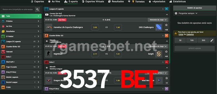 O 3537 Bet oferece uma grande seleção de opções de apostas em e-sports com probabilidades competitivas